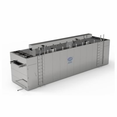 設備主要?于?制品、?制品等休閑?品,主要對產(chǎn)品進?烘?/烘烤、?冷(選配?藝段),烘?采?蒸汽換熱器進?換熱,烘烤采?遠紅外線進?加熱,產(chǎn)品在烘?區(qū)域、烘烤區(qū)域進?往返連續(xù)式輸送,以達到所需要?藝時間,整體加熱過程為?動檢測溫度恒溫,?動檢測濕度排濕,內(nèi)部?能?動循環(huán),節(jié)約能耗,選配?藝段
