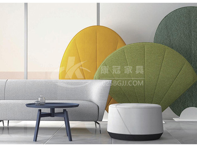 屏風(fēng)創(chuàng)意沙發(fā)的設(shè)計靈感來源于中國古代折扇、蒲扇和團扇三種形式,現(xiàn)代辦公環(huán)境講究工作便利而又兼顧私密性,設(shè)計彰顯其功能。當(dāng)使用者需要它進(jìn)行獨立協(xié)作或獨立思考時,扇子屏風(fēng)可以作為沙發(fā)的一種聲學(xué)墻模塊,可減少無關(guān)的背景噪音,形成一個辦公與創(chuàng)造的空間。屏面上代表扇骨的壓痕,具象的表達(dá)了扇子的形象,為辦公生活帶來輕松寫意的氛圍。不僅如此,扇子屏風(fēng)不僅具有吸音功能,同時在空間中能起到軟性隔斷的作用,優(yōu)雅的將不同空間分割開來。