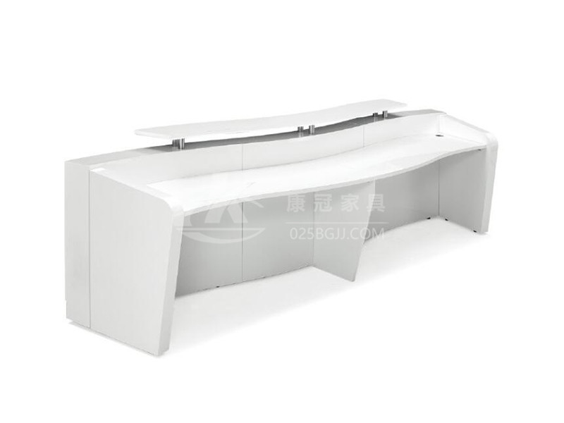除了接待服務(wù)外,還擔(dān)負(fù)著很多附屬功能,如企業(yè)形象、服務(wù)態(tài)度都將作為第一反應(yīng)記錄在員工與客戶的記憶中。作為企業(yè)的“玄關(guān)”,在形象展示上有著無可厚非的重要性。可延伸為“指示、引導(dǎo)”之意;在為人與人之間的交流溝通架起共性的橋梁同時(shí),其真正目的是指示、引導(dǎo)人們?cè)谝?guī)劃空間內(nèi)的進(jìn)一步交流與溝通。同時(shí)在企業(yè)形象與產(chǎn)品展示功能上亦扮演著重要角色。板式前臺(tái),四邊倒角幾何,采用矩形管焊接結(jié)構(gòu),L型鋼件固定,內(nèi)置隱藏LED燈組,人性化設(shè)計(jì),外觀大氣簡(jiǎn)潔,方便接待人員與客戶之間的交流溝通。
